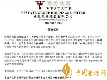 根據(jù)合作協(xié)議,深圳馬琪須主要負責開發(fā)煙草大數(shù)據(jù)平臺、申請獨家銷售煙草智能終端牌照以及設計及制造銷售煙草的銷售點(銷售點)智能終端。