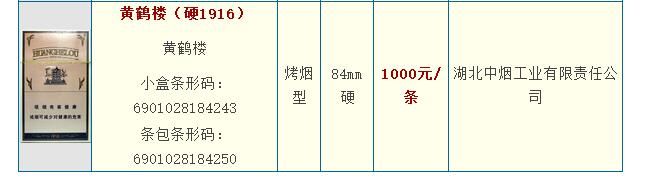 黃鶴樓1916硬盒價格表黃鶴樓1916硬盒多少錢一包