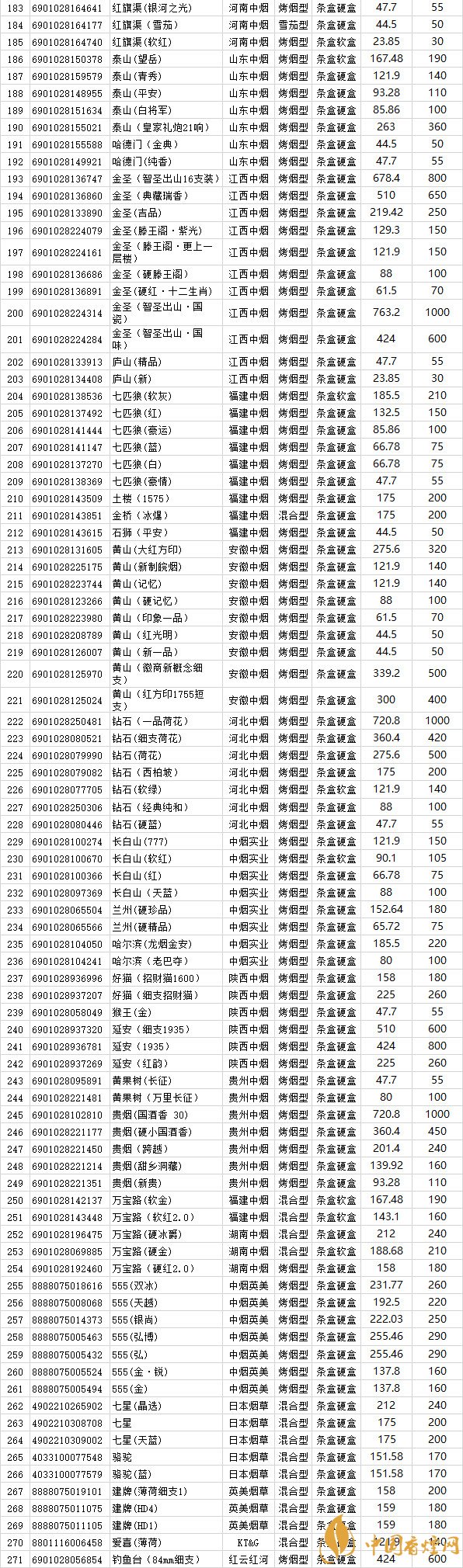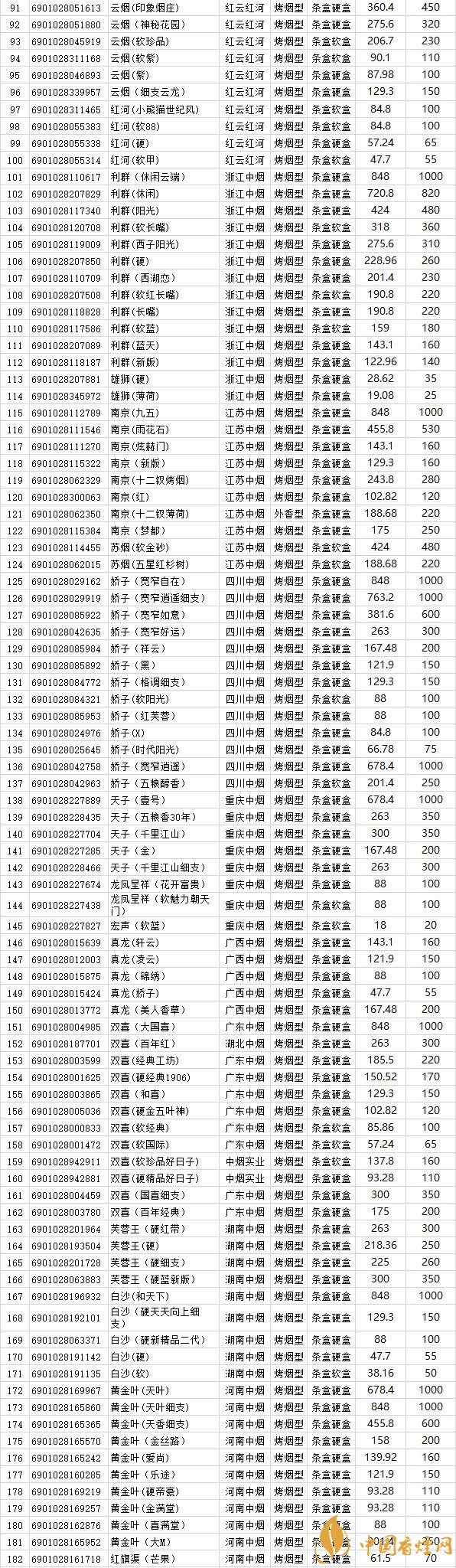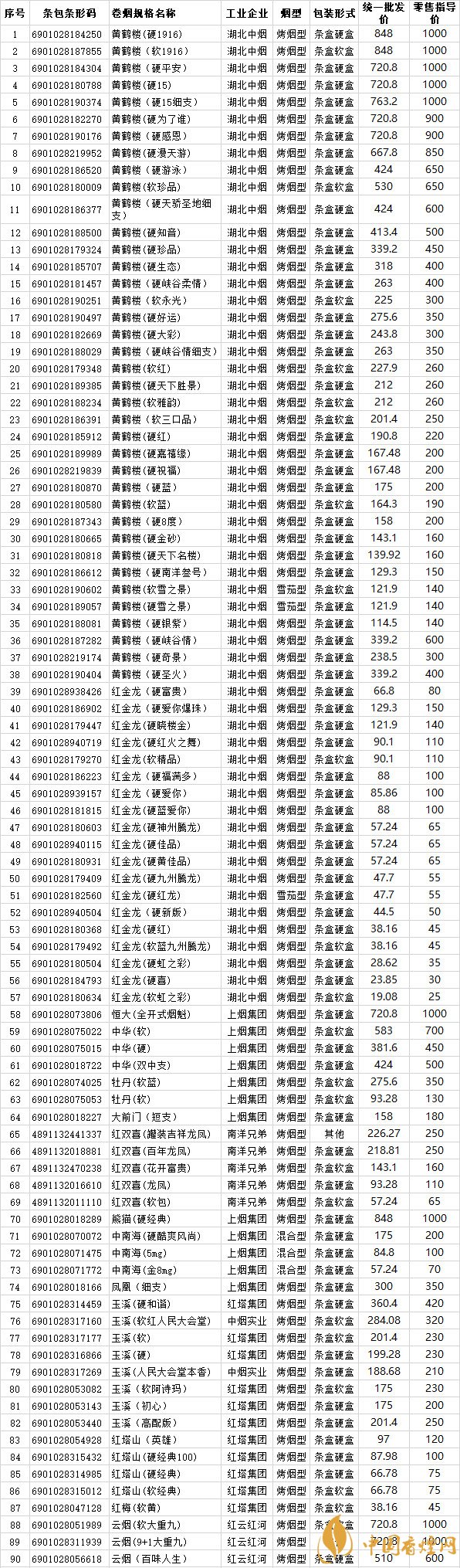 2018年卷煙銷(xiāo)售湖北地區(qū)271種 2018年上半年湖北省卷煙價(jià)格目錄