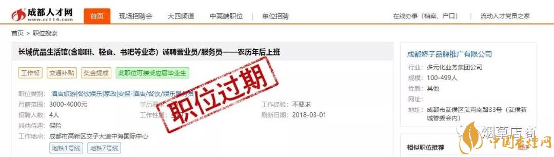 前面為大家介紹了,四川中煙第一次新零售發(fā)聲 創(chuàng)新高質(zhì)量發(fā)展全力謀變(優(yōu)品生活體驗(yàn)店)。朋友圈里確實(shí)有長(zhǎng)城優(yōu)品生活館的H5宣傳介紹,而且也確實(shí)聲稱(chēng)自己是“全國(guó)首家煙草集合店”。在介紹里面也有它是“煙草、咖啡、輕食、書(shū)籍與文創(chuàng)產(chǎn)品”五大生活元素的完美融合者。它是四川中煙產(chǎn)品展示銷(xiāo)售平臺(tái)。據(jù)說(shuō)本月成都長(zhǎng)城優(yōu)品生活館開(kāi)啟。此外,小編也在成都人才網(wǎng)看到了已經(jīng)過(guò)期的“長(zhǎng)城優(yōu)品生活館(含咖啡、輕食、書(shū)吧等業(yè)態(tài))誠(chéng)聘營(yíng)業(yè)員/服務(wù)員——農(nóng)歷年后上班”的招聘啟事,通過(guò)職位描述可以感受店內(nèi)的大概服務(wù)