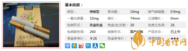 這款煙焦油量10mg,煙堿量0.8mg,煙支長度較短,只有74mm,香煙不耐抽。