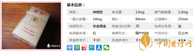 猴王磨砂香煙價格及參數(shù) 10元檔的誠品好口糧!