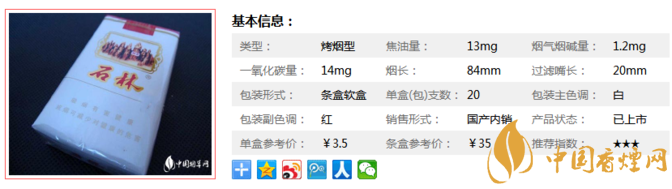 石林軟香煙已經停產,但是經典是不可超越的,下面我們一起來看看它的參數(shù)信息。煙長84mm,焦油量13mg,煙堿量1.2mg,一氧化碳量14mg。