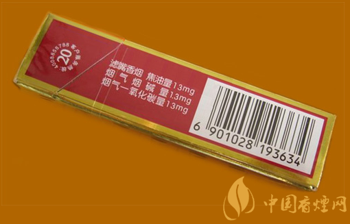 類型 :烤煙型 焦油量 :13mg 煙氣煙堿量 :1.3mg 一氧化碳量 :13mg