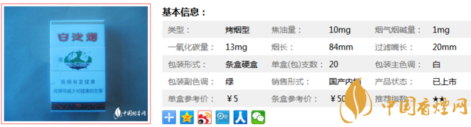 白沙硬多少錢一包 白沙硬香煙價(jià)格及參數(shù)