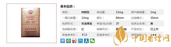 | 類型 :烤煙型 | 焦油量 :11mg | 煙氣煙堿量 :1mg | 一氧化碳量 :12mg |