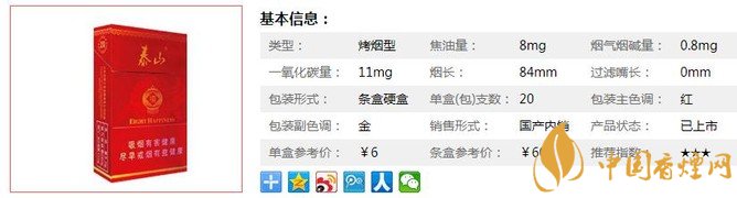 泰山香煙價格多少 泰山硬紅八喜價格6元一包