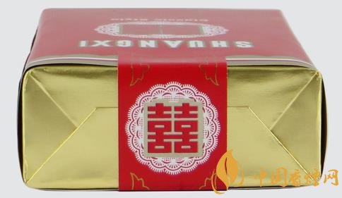正面剪紙圖花潔白,“喜喜”則浮貼其上,嵌以金邊,喜氣洋洋。上為中文商標(biāo)“雙喜牌香煙”,下有“經(jīng)典雙喜”字樣,金線之下為大警語(yǔ)。煙支入眼,樸素清秀,豎紋煙紙上印有紅色“喜喜”,金葉兩側(cè)環(huán)繞,下有“01”字樣。濾嘴稍短,下鑲金圈,整體感覺(jué)有種典雅之秀氣。