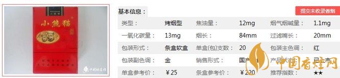 三、小熊貓軟珍品香煙參數(shù)