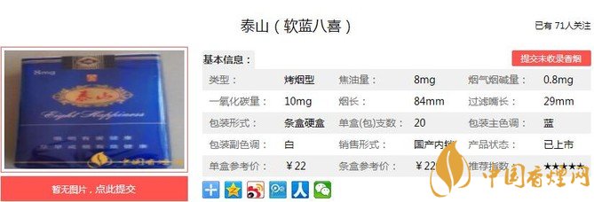一、泰山軟藍(lán)八喜香煙價(jià)格