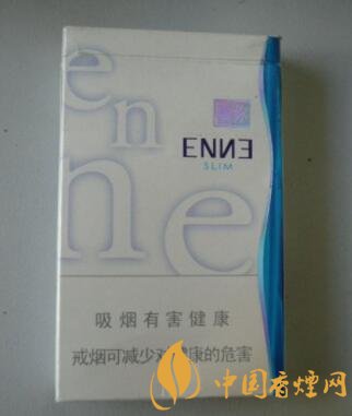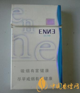 包裝采用瓷白色的干凈背景,配以藍色的E和N兩個英文字母的組合疊加運用,從上至下,從左至右,個性鮮明,最下面寫著吸煙有害健康盡早戒煙有益健康的警示語標志,右邊是一束成s形的藍色圖塊,整體包裝簡約明快、時尚大氣。