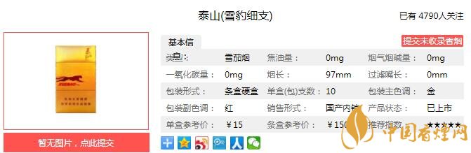 一、泰山雪豹細(xì)支香煙價格