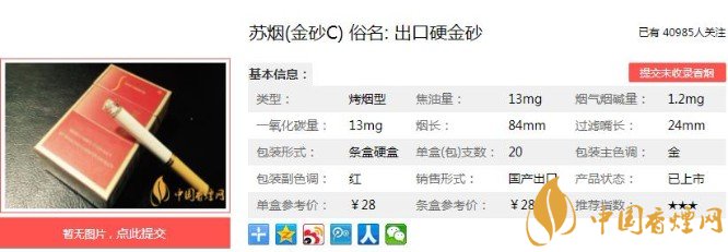蘇煙金砂C多少錢一包蘇煙金砂C價格及口感分析!