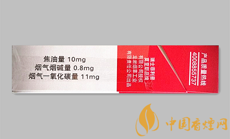 類型 :混合型 焦油量 :10mg 煙氣煙堿量 :0.8mg 一氧化碳量 :10mg