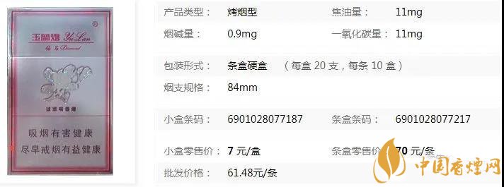 鉆石銀玉蘭煙多少錢?