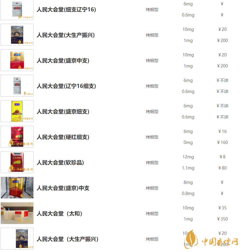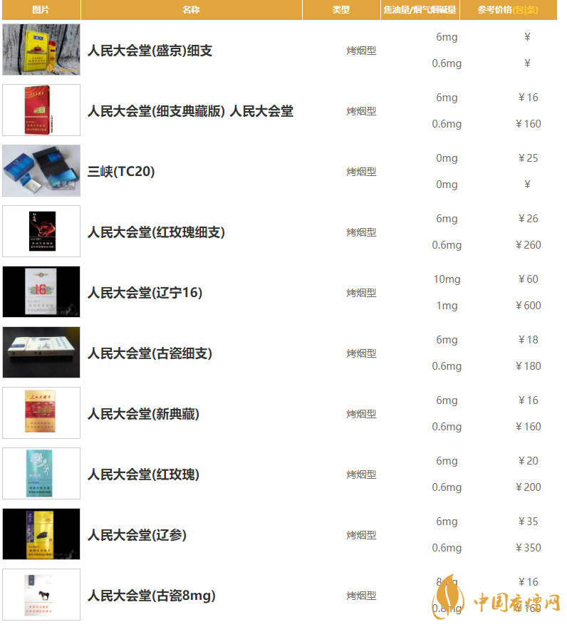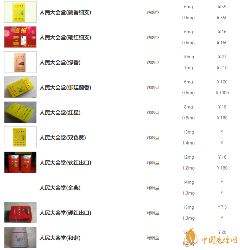 人民大會堂香煙價格表和圖片