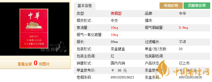 中華香煙金中支價(jià)格及圖片 中華香煙金中支多少錢一包