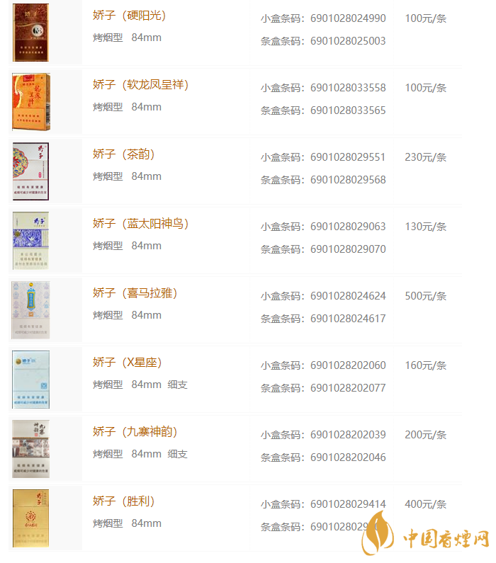 2020年嬌子香煙價格表圖