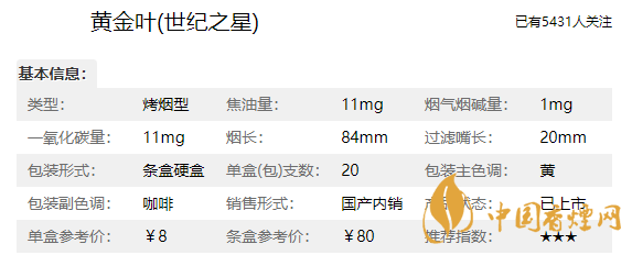 黃金葉世紀(jì)之星多少錢一盒