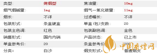 白沙紅運當頭香煙參數
