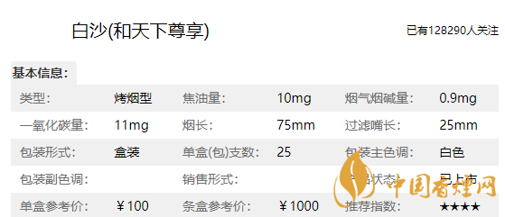 白沙和天下香煙核心參數(shù)