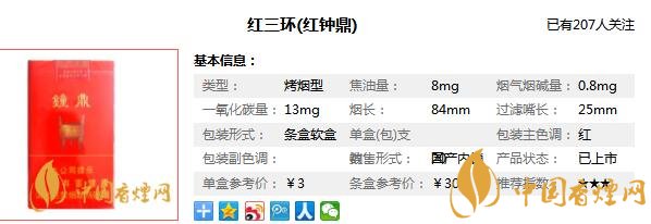 紅鐘鼎煙多少錢一包 紅鐘鼎香煙價(jià)格3元/包