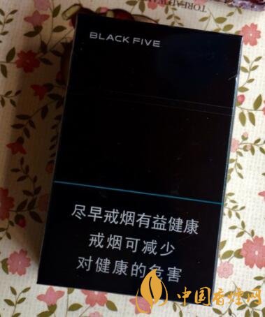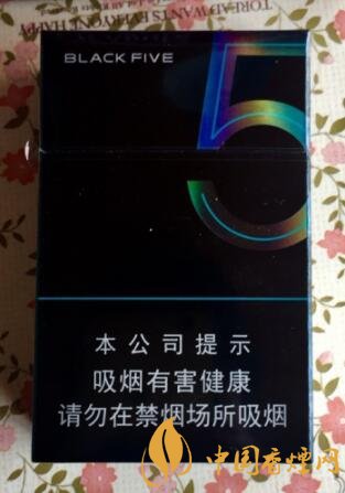 中南海典5外包裝整體采用的是黑色作為底色,和黑八很像,正面左上角寫著英文:BLACK FIVE,右上角是一個大的5,這個數(shù)字的中心是用淡淡的綠色,外圈燙銀,不同的角度會顯示不同的顏色,在正下方警示標語的上面有一條綠色的線,在這條線的左上方其實是有凸出的中南海和中南海拼音,背面和正面差不多,包裝煥然一新十分有立體感。