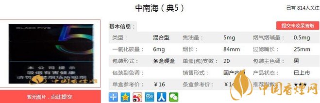 一、中南海典5香煙價格