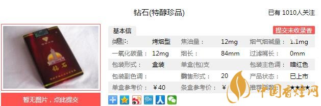 一、鉆石特醇珍品香煙價格