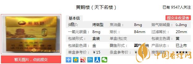 三、黃鶴樓天下名樓香煙參數(shù)