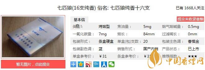 三、七匹狼純香十六支香煙參數(shù)