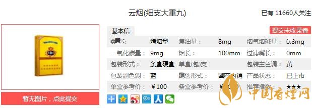 一、云煙(細(xì)支大重九)香煙價(jià)格