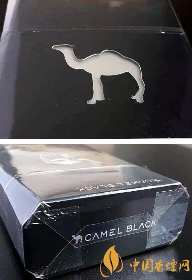 正面盒蓋頂部,一只小駱駝,后面是英文CAMEL BLACK。