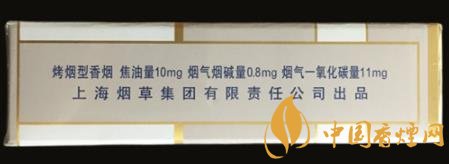 類型 :烤煙型 焦油量 :10mg 煙氣煙堿量 :0.8mg 一氧化碳量 :11mg