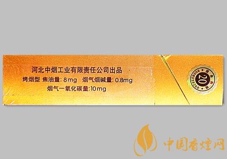 類型 :烤煙型 焦油量 :8mg 煙氣煙堿量 :0.8mg 一氧化碳量 :10mg