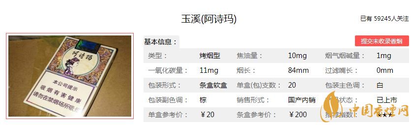 玉溪阿詩(shī)瑪香煙價(jià)格參數(shù)