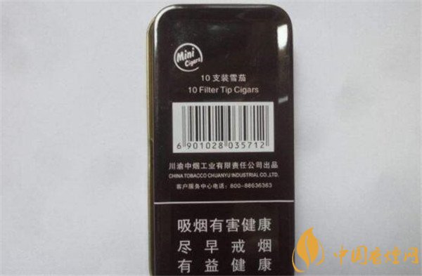 類型 :雪茄煙 焦油量 :10mg 煙氣煙堿量 :1mg 一氧化碳量 :10mg