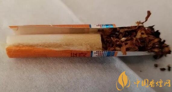 剖開濾嘴,從絲束的顏色變化來看,降焦孔是開在了絲束的前2/5部位。絲束的顏色變化均勻,降焦孔前段的顏色也不算太深,這個和添加了煙梗有比較大的關(guān)系,煙支自燃性良好,不用用力吸入,空氣的導(dǎo)入效果也不錯,煙氣的風(fēng)味均衡保持良好。