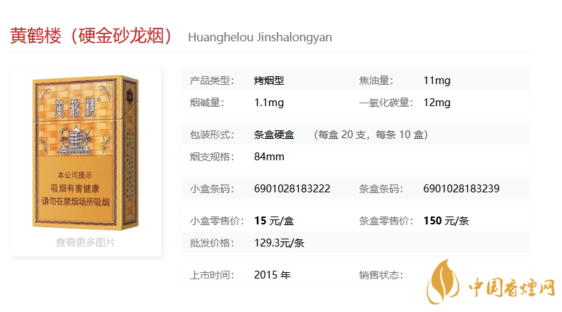 黃鶴樓硬金砂龍煙基本信息