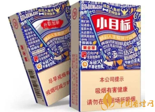 “先吸一口,再掙他一個億”小目標(biāo)的這句伴隨語就充滿了正能量。這些包裝上的小目標(biāo)跟現(xiàn)在年輕人的理想也完美契合,牢牢的抓住了年輕受眾的心 。喜歡類似的煙,可以是搜黃鶴樓三口品,白沙天天向上。屬于青年定位的口糧。以上就是香煙網(wǎng)小編為大家整理介紹的關(guān)于黃金葉小目標(biāo)香煙的相關(guān)信息,更多了解點(diǎn)擊: