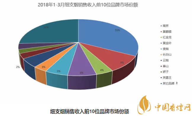 1、如圖所示2018細支煙排行榜(銷量)圖:在2018第一季度中國細煙排行中1-3月細支煙銷量前10名品牌市場份額一目了然,因此2018第一季度細支煙品牌銷量排行榜:第一名南京、第二名黃鶴樓、第三名黃金龍、第四名:黃金葉、第五名:貴煙、第六名:長白山、第七名:云煙、第八名:泰山、第九名:嬌子第十名:芙蓉王