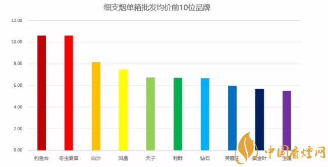 4、如圖所示2018細支煙排行榜(單項批發(fā)價)圖:中國細煙排行單項批發(fā)價前10品牌榜:在第一季度中國細煙排行中1-3月細支煙單項批發(fā)價前10品牌一目了然。第一名釣魚臺、第二名冬蟲夏草、第三名白沙、第四名鳳凰、第五名天子、第六名利群、第七名鉆石、第八名芙蓉王、第九名:云煙黃金葉、第十名玉溪