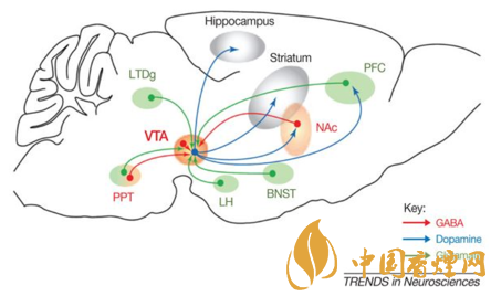 尼古丁通過與尼古丁乙酰膽堿接受器結合,增加神經(jīng)傳遞物的量,腦中的多巴胺增加,尼古丁實際上制造了大腦空虛感,通過吸煙等方式提高濃度后,緩解了尼古丁快速代謝所帶來的空虛,給人造成吸煙帶來的愉悅感的假幻覺,導致了吸煙成癮現(xiàn)象的發(fā)生。
