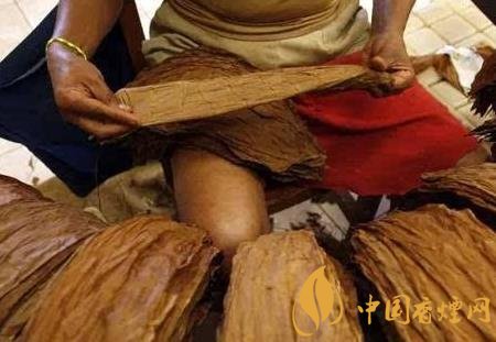 在卷煙師卷制之前,工人們需要制備茄衣煙葉以及茄芯煙葉。在卷煙師卷制的開始階段,卷煙師要將兩張或三張半片煙葉平鋪制作茄套。雪茄制成時,煙葉帶葉脈的背面將朝內(nèi)。茄套主要起到固定茄芯,平衡燃燒的作用。