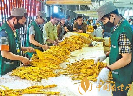 初分加工??竞鬅熑~在加工場所去青去雜后,按部位簡化定級成包,直接進入煙站收購環(huán)節(jié)或復烤廠進行后續(xù)加工。