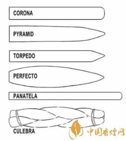 魚雷雪茄(TORPEDO)。中段是凸起的,頭部是尖的,尾部是封閉的。