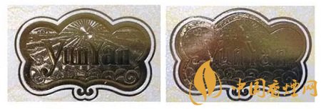 真品卷煙:云煙燙金圖案立體,凹凸分明,線條清晰,層次感強,金屬感強。