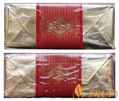 真品卷煙:1.封簽圖案印刷清晰,圖案及線條顏色明亮,線條印刷粗細(xì)相同。2.鋁箔紙顏色金色深,凹點(diǎn)均勻,距離適中。