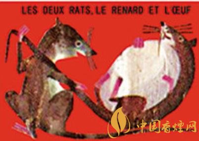 法國著名煙草經(jīng)銷機構(gòu)塞塔公司推出過系列伊索和拉封丹寓言卡通火花,其中的“鼠火花”內(nèi)容詼諧,十分有趣?!峨p鼠、狐貍和雞蛋》(圖二)讓外界不要低估老鼠的智慧。狡猾的狐貍原本認(rèn)定老鼠搬不了雞蛋,不料兩個耗子狡黠協(xié)作,一個躺倒抱住雞蛋的同時直接讓伙伴拽拉著它的尾巴,彼此安然回洞!《老鼠和牡蠣》(圖三)是說被誘惑和貪婪的后果很嚴(yán)重:內(nèi)陸之鼠初到海邊,看到張殼做日光浴的牡蠣新奇不已,竟一頭伸進殼中欲以秀色為餐,結(jié)果……即刻就要閉合的美艷景色不會免費啊!