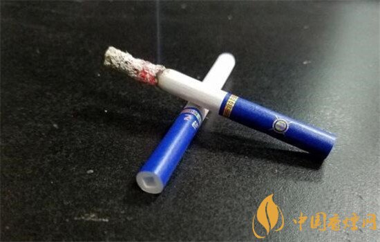 煙支設(shè)計我喜歡,煙嘴的變化非常大,深藍色的過濾嘴,獨有的方型鏤空濾嘴,完美取代了老版的溝槽濾嘴,既具個性,又顯時尚。碩大的爆珠標識印在過濾嘴處,稍顯浮夸。可能是突出個性的用意吧,濾嘴長34mm,沒有降焦孔。煙葉切割工整,質(zhì)地也不錯。